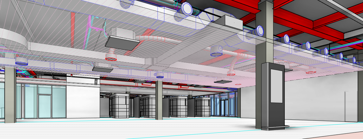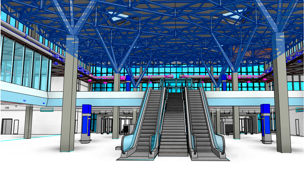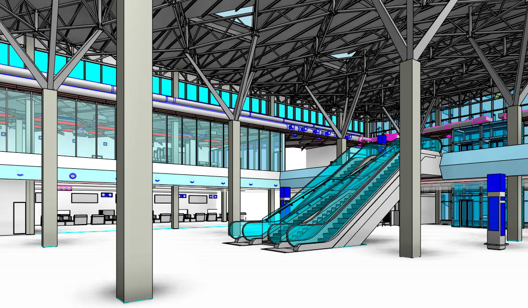 При проектировании терминала компания активно использовала различные связи ПО Autodesk. Например, процесс создания и координации инженерных сетей:
